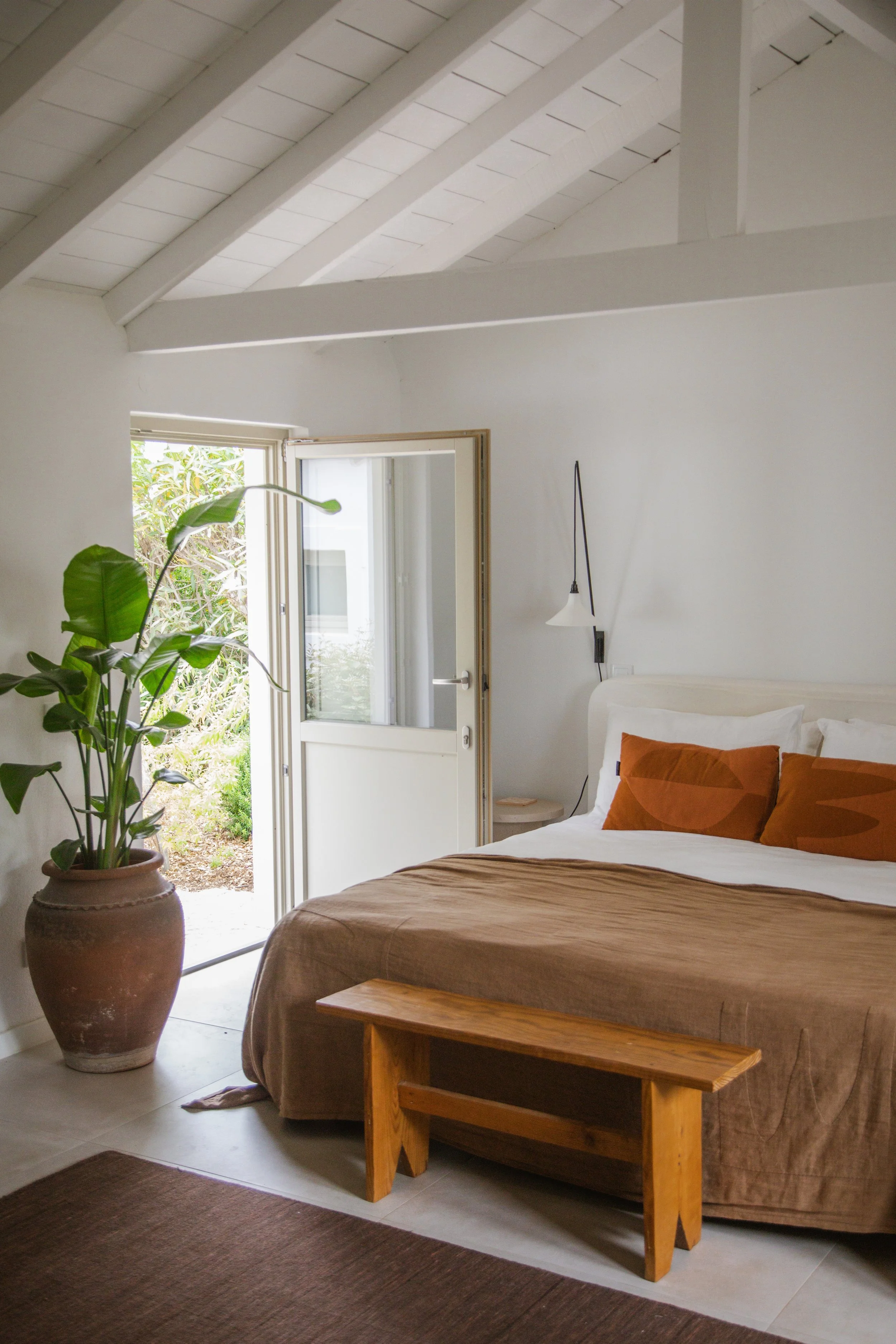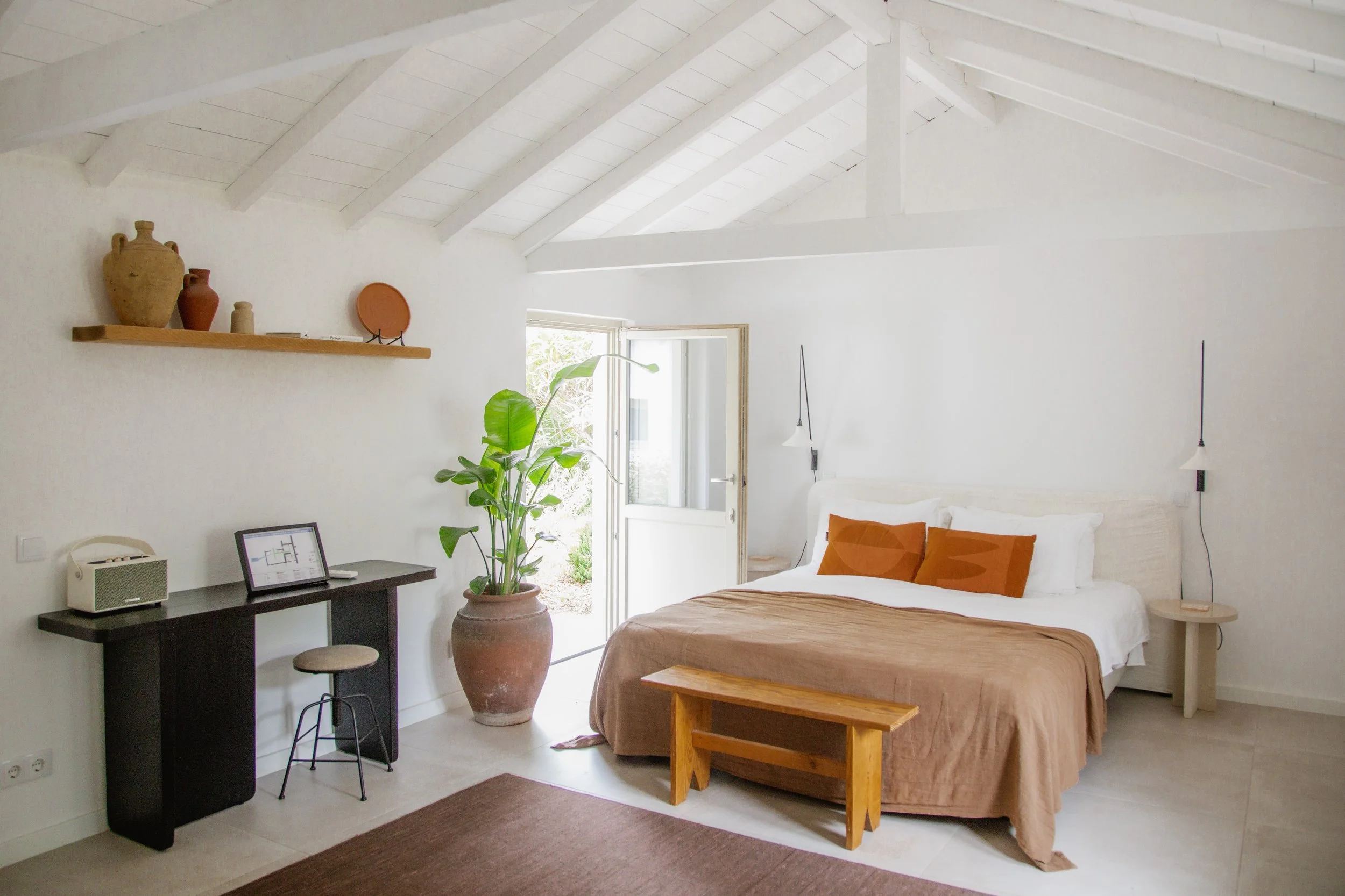 Garden view • Private outdoor terrace • Super-King Bed 180 x 200 • Free WiFi • En-suite Bathroom • Heated W.C. Floor • Air conditioning/heating • Mini Fridge • Linen and Towels Provided • Beach/Pool Towels Provided • Free 8950 Toiletries • Desk and chair • Portable Speaker with Bluetooth, USB & AUX • Hairdryer • Safe Upon Request • Breakfast Included