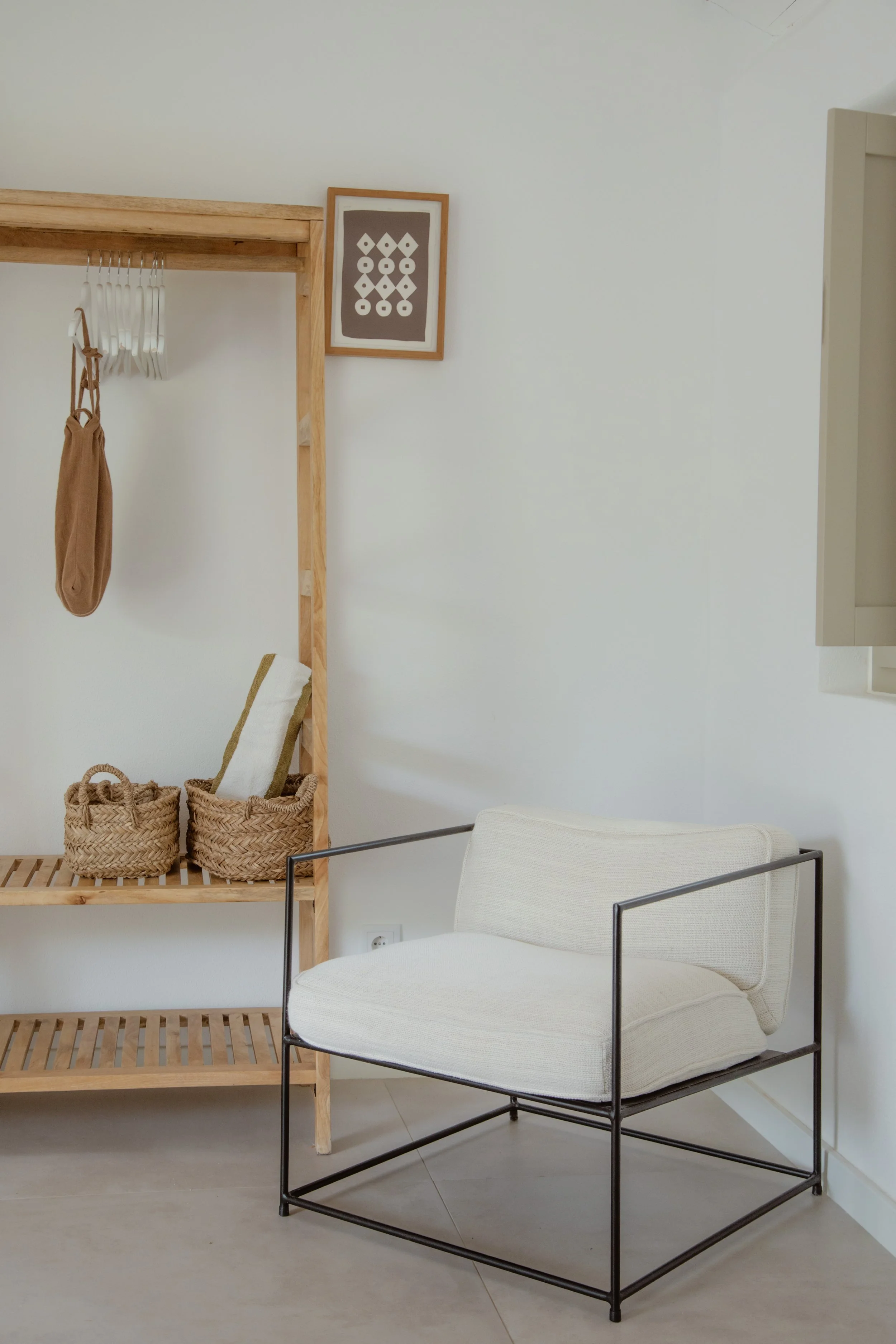 Free standing open wardrobe with coat hangers